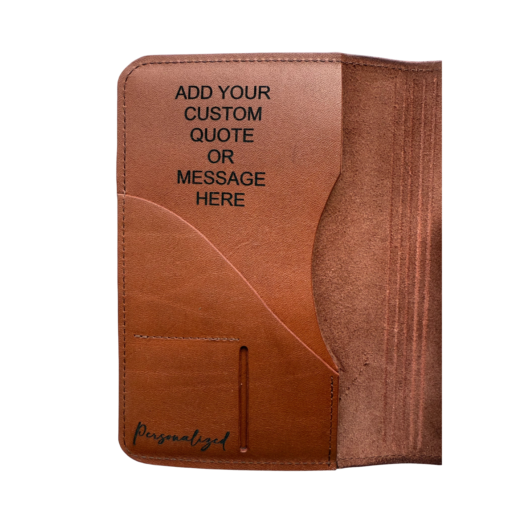 This exquisite leather journal is beautifully made to last a lifetime. Each cover is cut and crafted from premium leather, developing character and patina with every use. Inside, high-quality pages are ready for your handwriting, sketches, prayers, or plans. Personalize it with your name, initials, or choose one of our custom designs to make it uniquely yours.